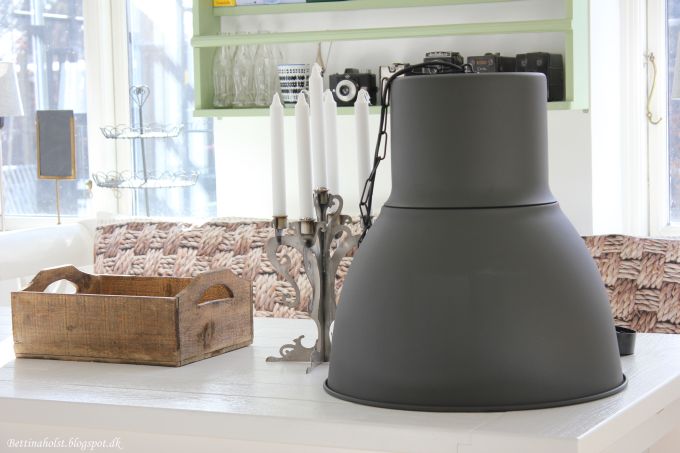 Efter kun 7 måneder er jeg allerede træt af stilen i køkkenet. Er vild med lampen, der hænger der nu, men den flytter altså rum til fordel for denne massive og kæmpe store lampe fra Ikea.