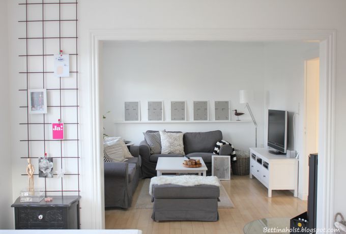 Jeg bor også i en grå og sort stue med mørke grå vægge, troede det skulle være rent sort, hvid og grå, men nej lidt farve skal der til så nu er blå og grøn laaaangsomt på vej ind.
