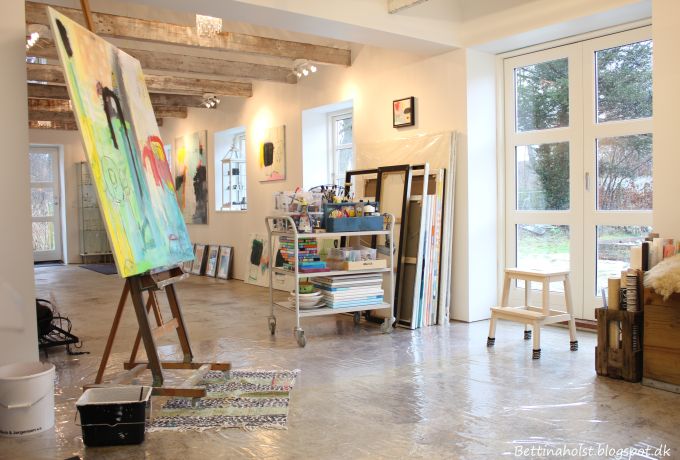Ej, hvor ser det fedt ud! Belysningen, det naturlige lys, gulvet, pladsen, ja det hele! Hold da op, det er dig vel ondt! Tillykke med det fantastiske atelier, det blir en fest at udøve din kunst på lærred i de smukke omgivelser! Og super hyggeligt ser det også ud!